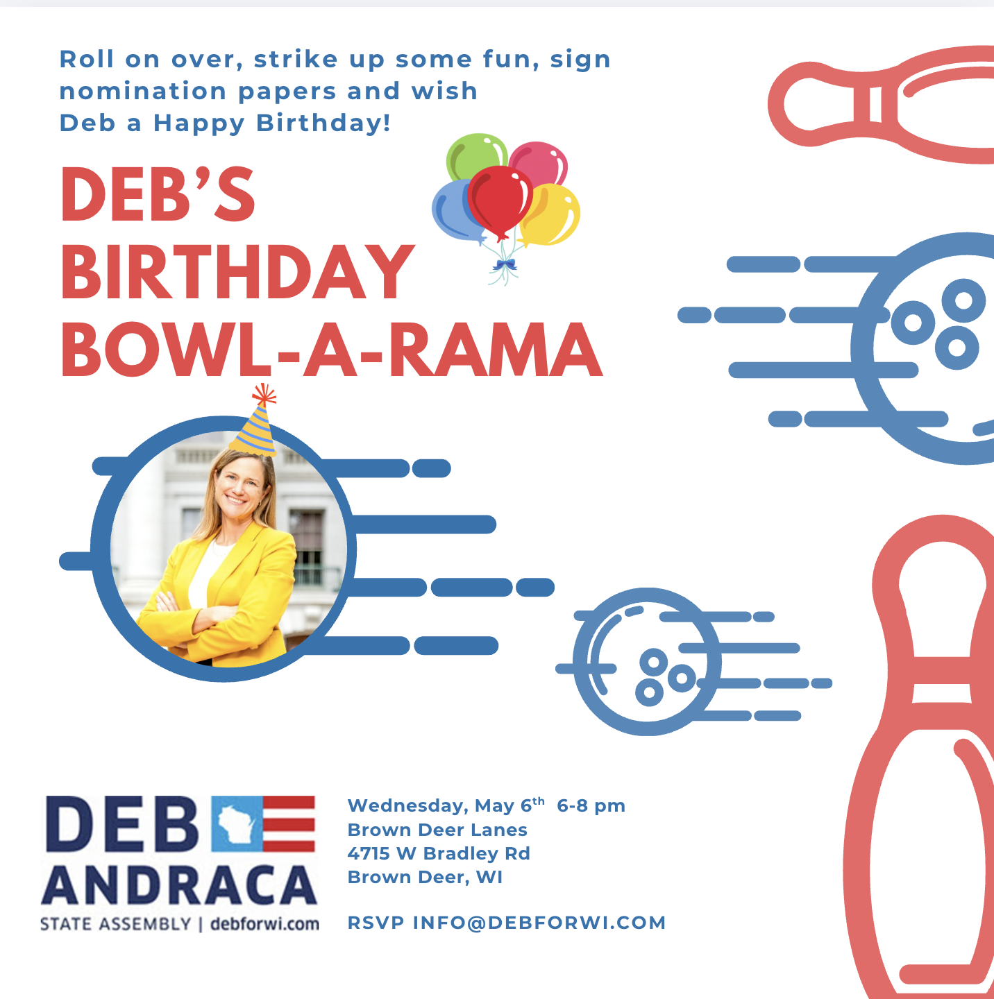 Join us at Brown Deer Lanes on Wednesday, May 6th to sign nomination forms, eat cake, and “strike” up some fun!